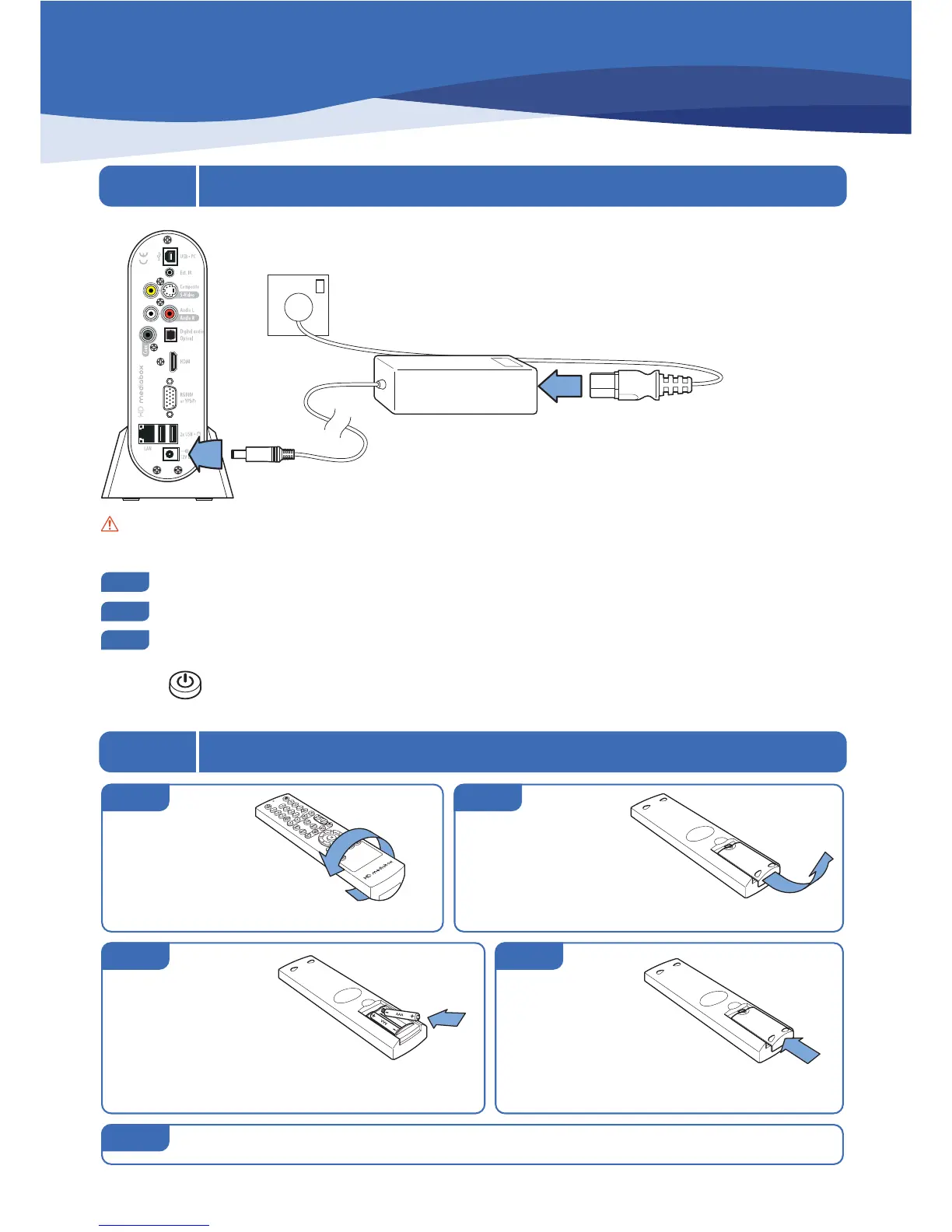 Caution: Use the 12v auto-sensing unit supplied with HD MediaBox. Ensure that the cable provided is suitable