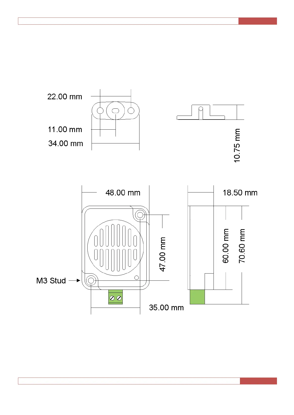 Figure 5 - External Speaker & Microphone Kit Stud Mounting and Dimensions