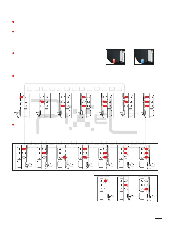 Channel indicator has 3 red indicators which are L1, L2, and L3. Transmitter