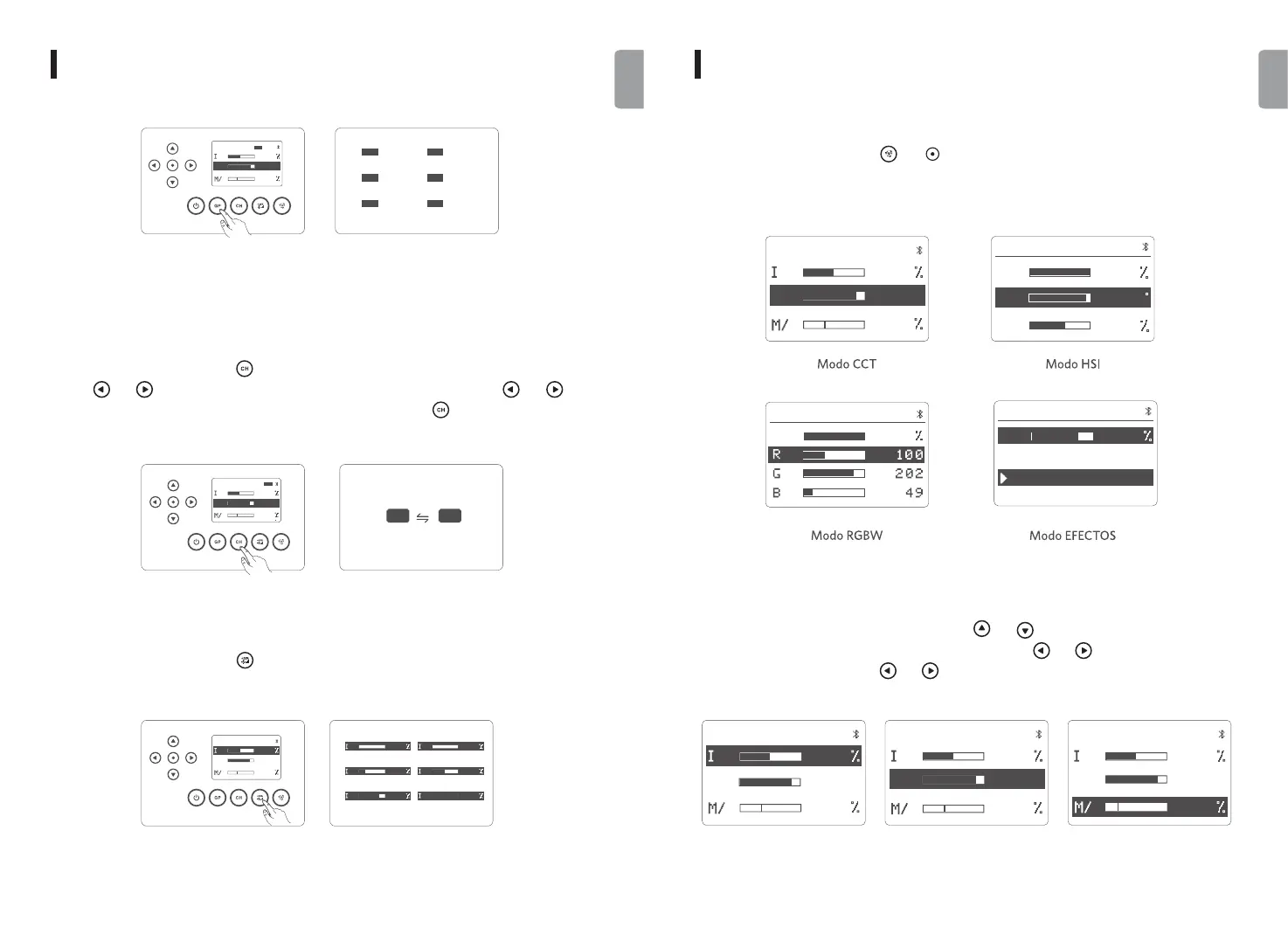 Presione brevemente el botón [ ] o [ ] para recorrer el modo CCT, el modo HSI, el modo