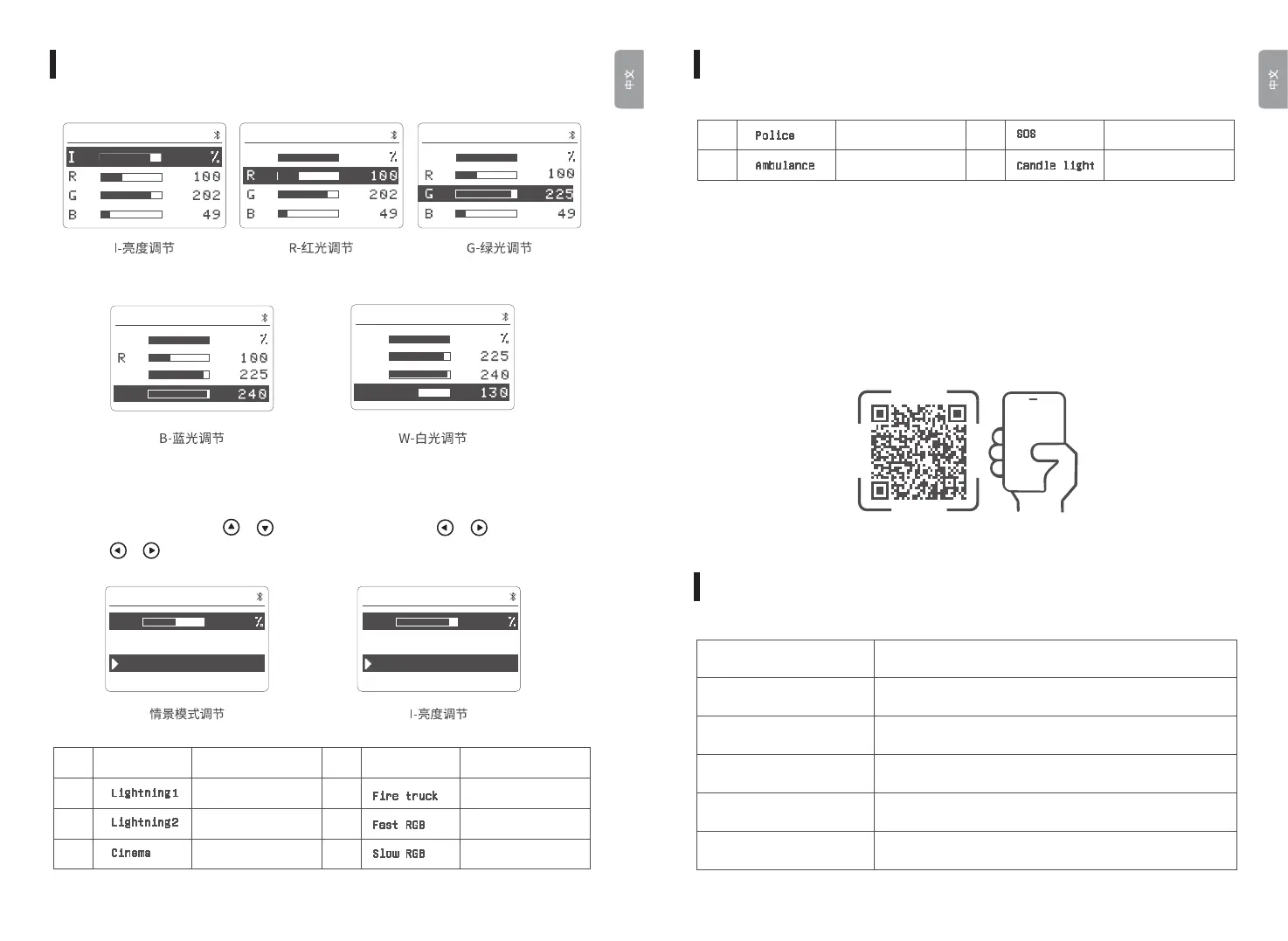 EFFECTS情景模式中短按 ][ 按钮选择情景模式短按 ][ 按钮增减亮度数