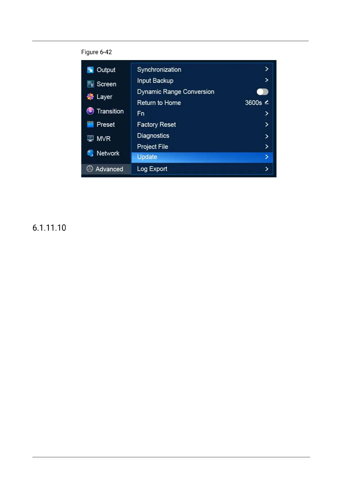 Select Update to open the update file screen. Select a file and select OK in the dialog