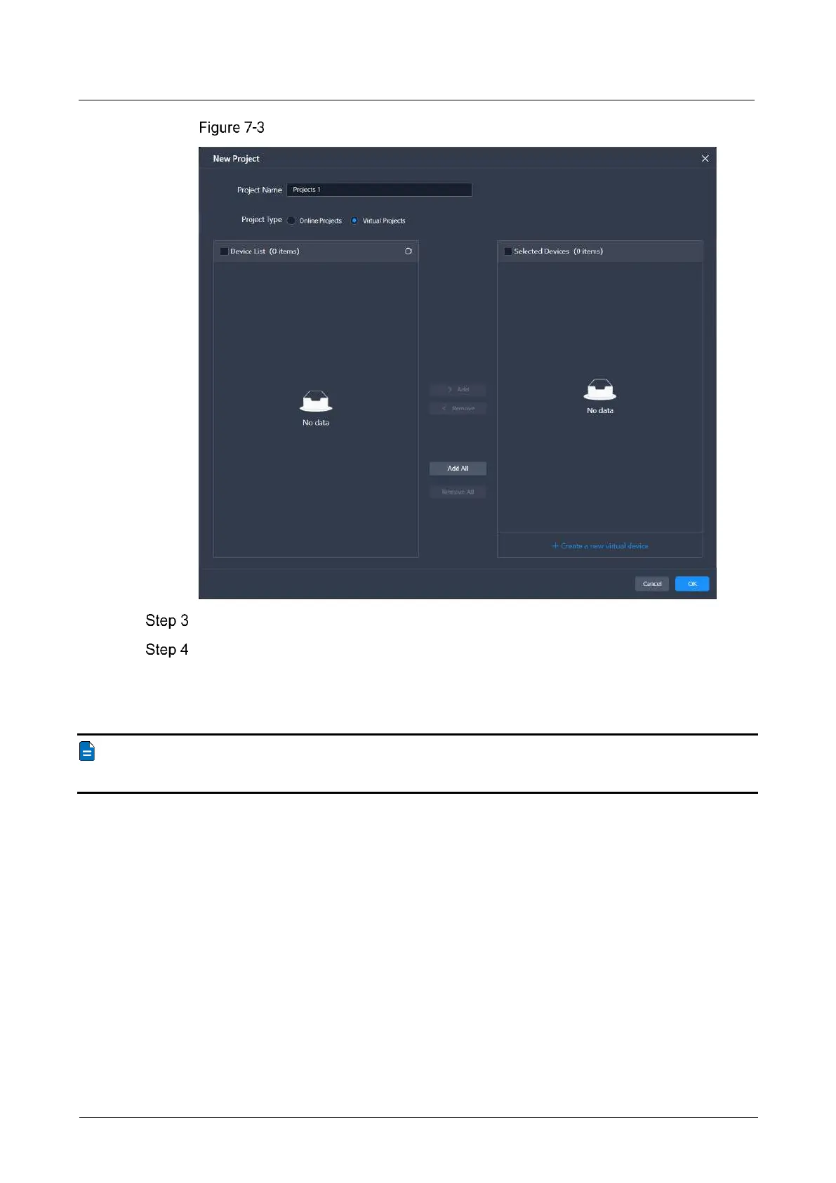 For a virtual project, you can click Create a new virtual device. In the dialog box that