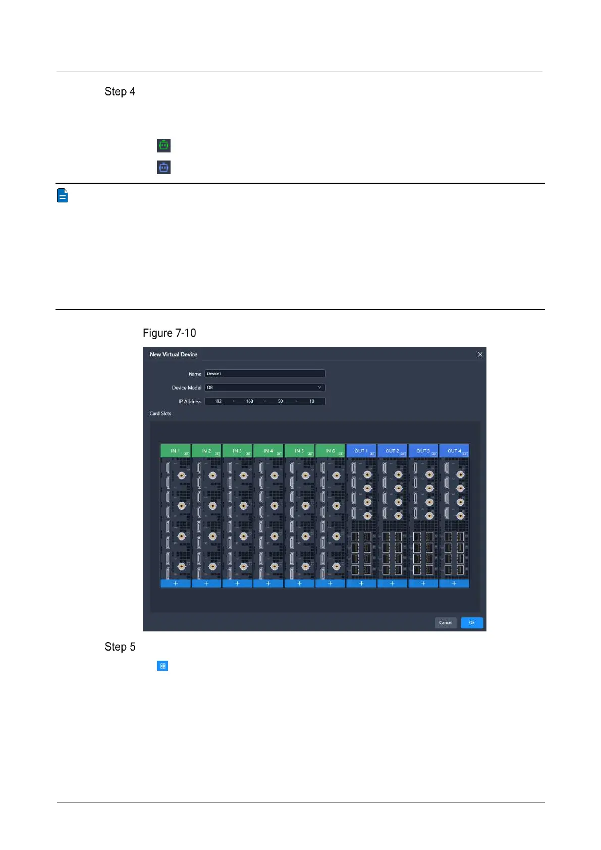 In the pop-up dialog, set the device name, model, and IP address, and click OK.