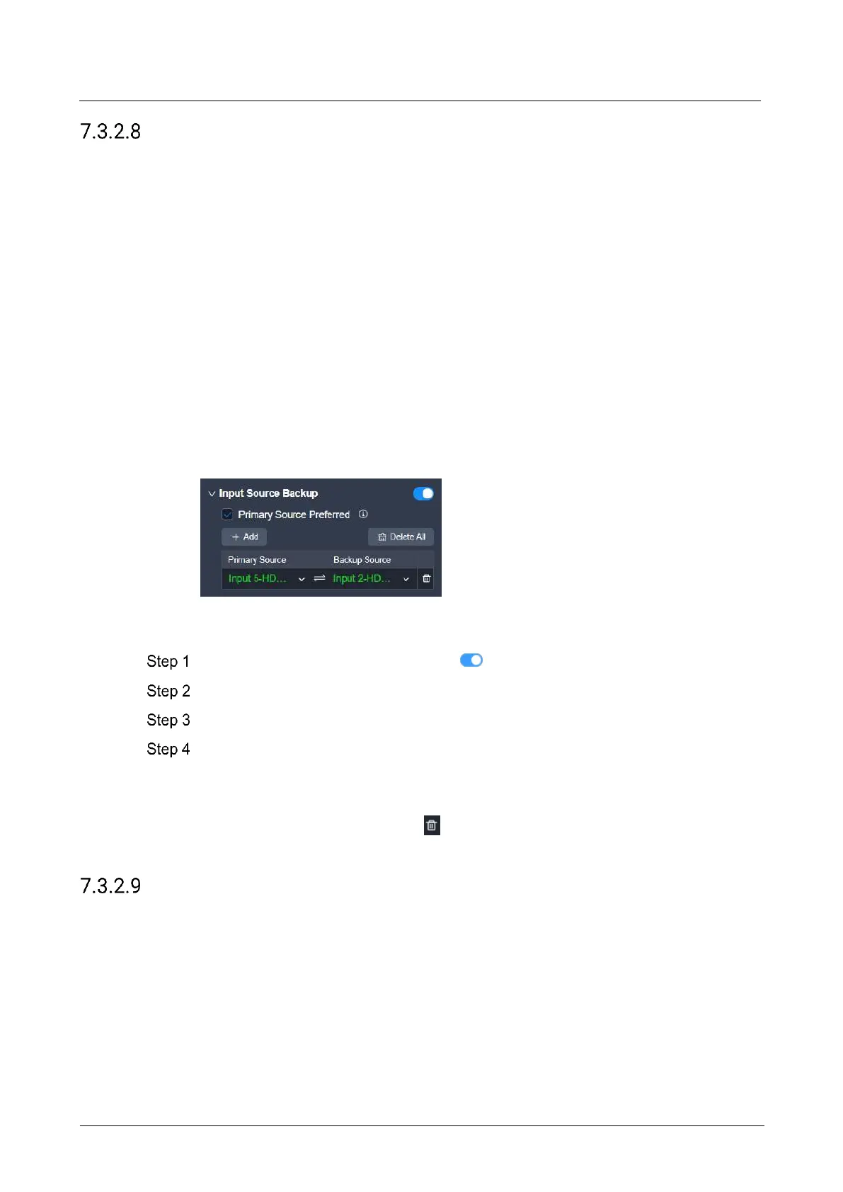 Configure the backup relation between two sources. For two input sources with a hot