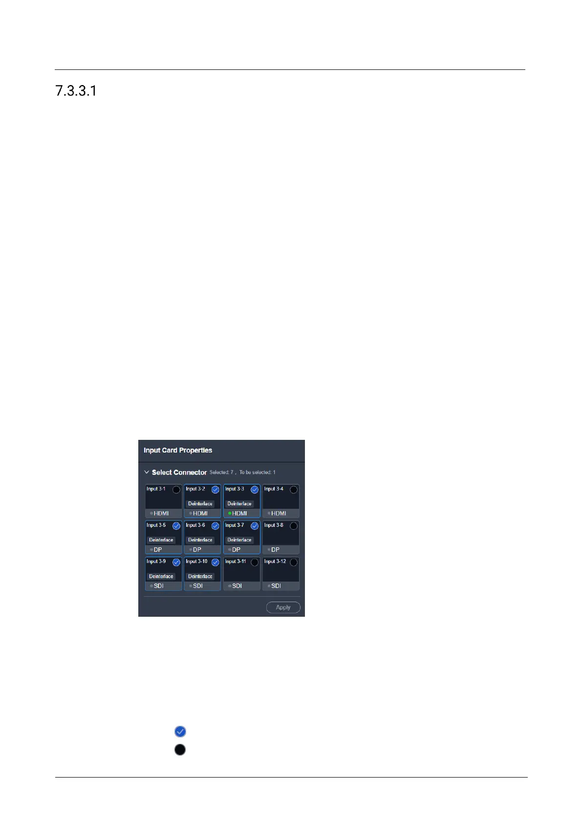 Set the input connectors to be used, connector capacity (resource occupation) and