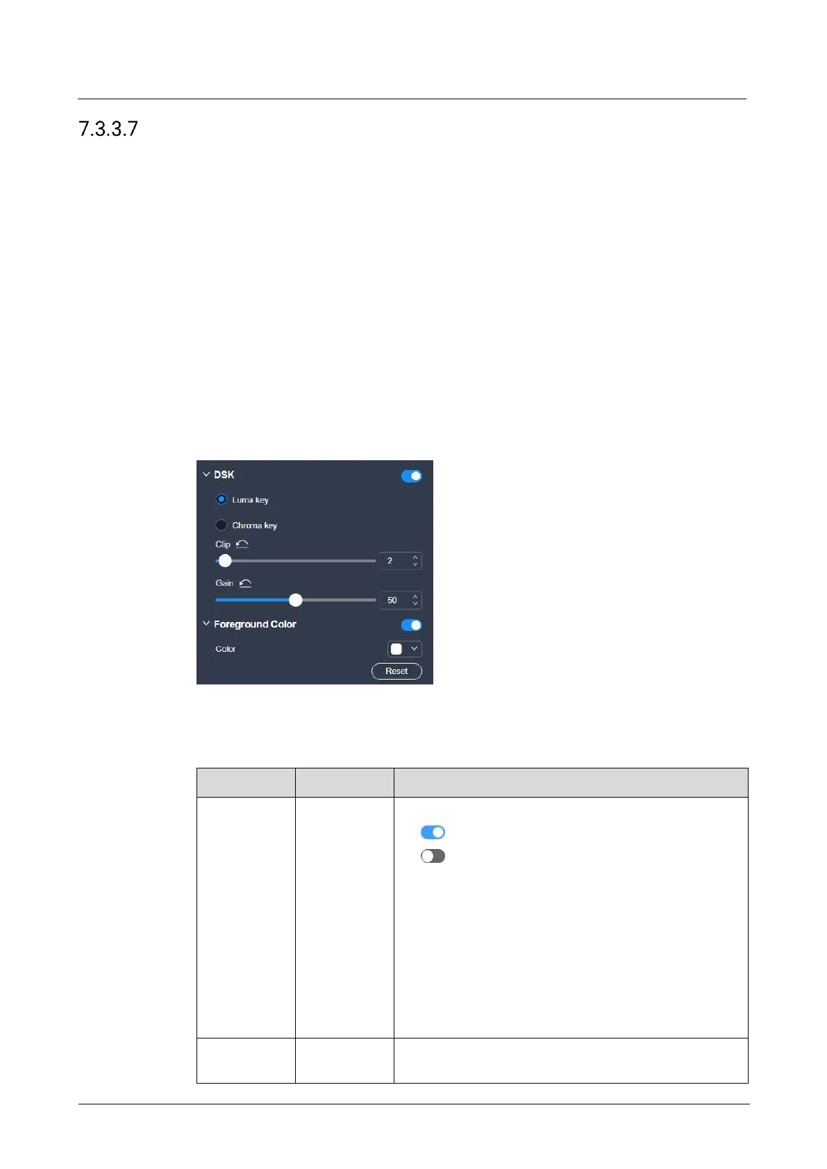 On the DSK tab interface, configure the following parameters.