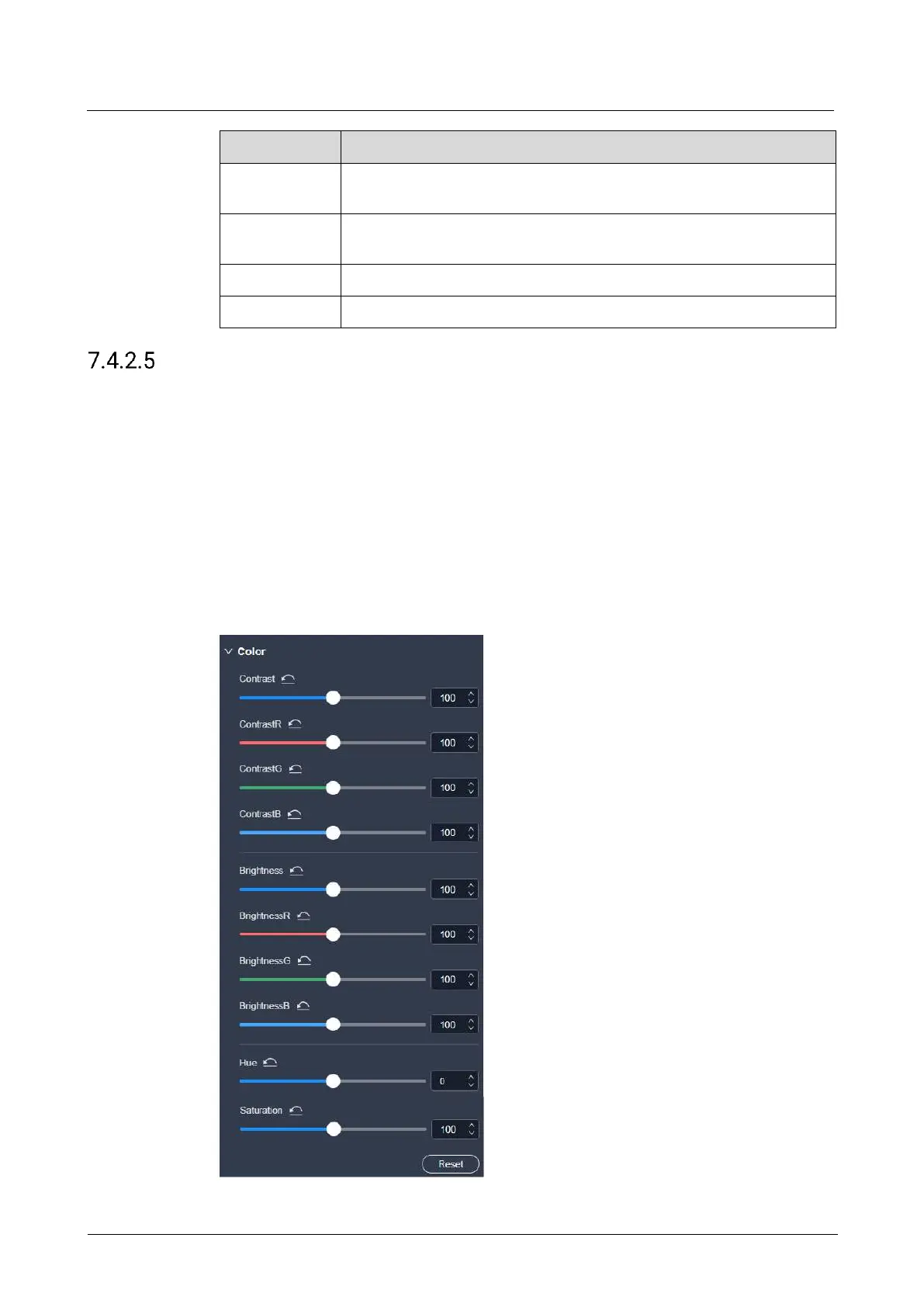 Configure the screen color parameters.