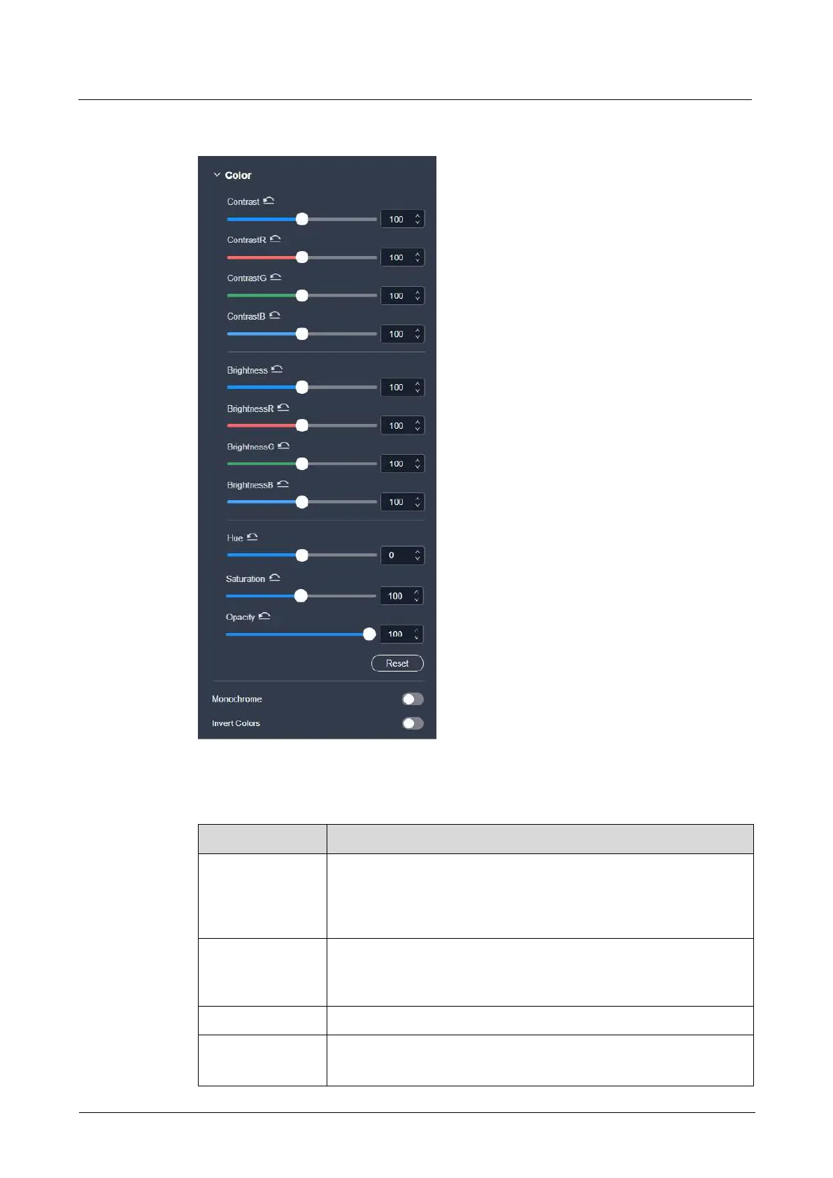 Adjust the contrast value either as a whole or individually adjust