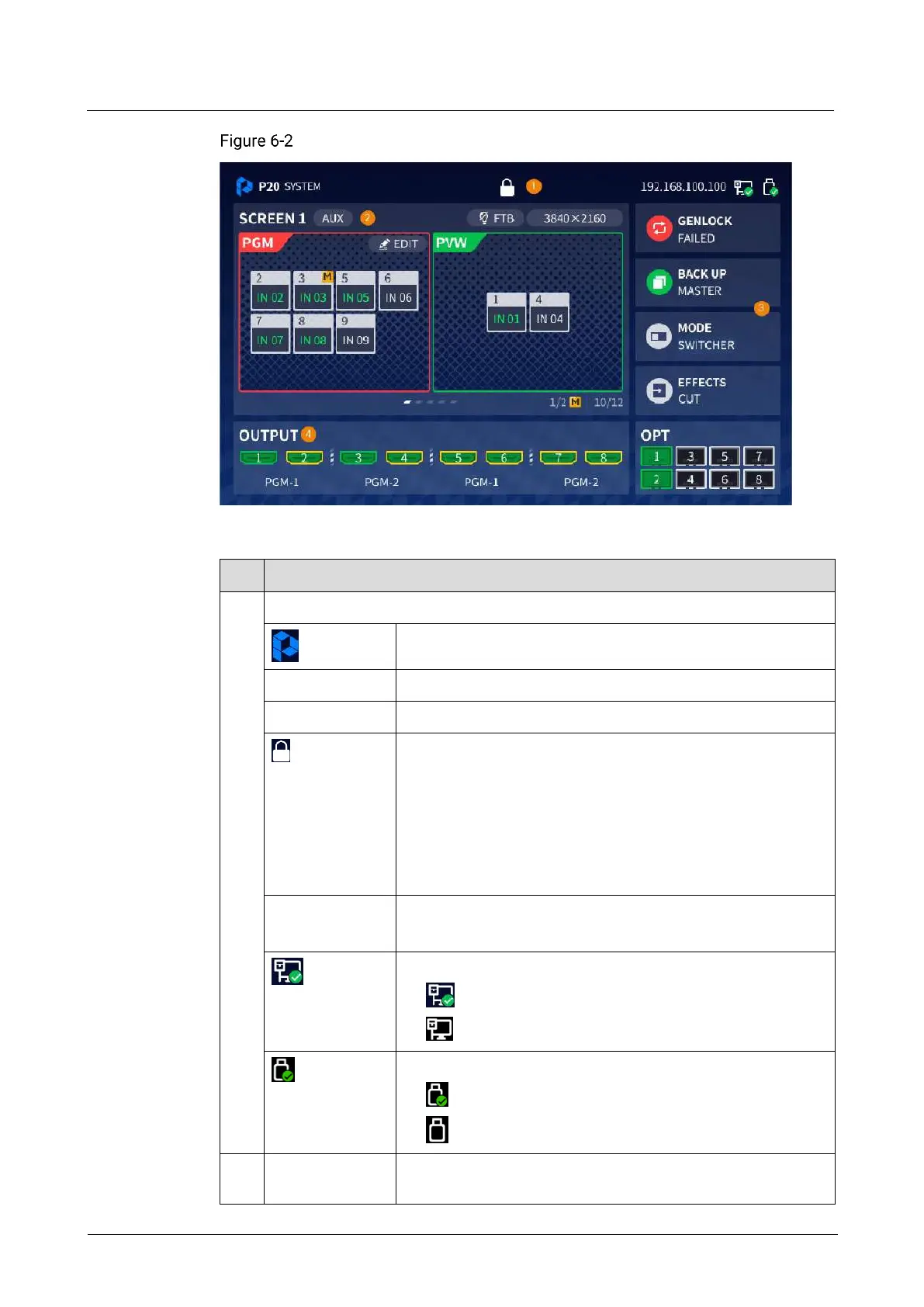 Table 6-1 Home screen description