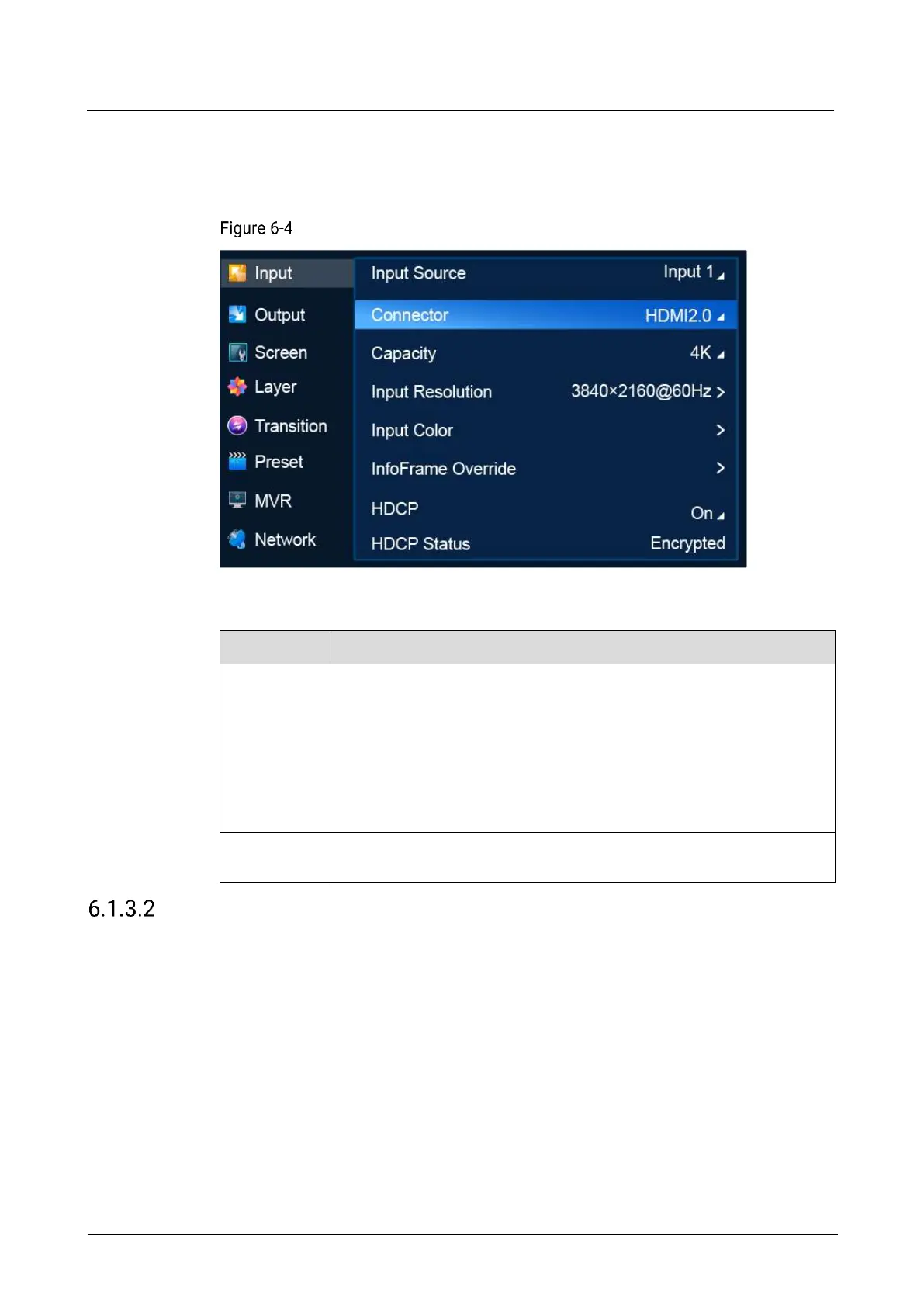 Select the type of the input connector. Either DP 1.2 or HDMI 2.0 can be