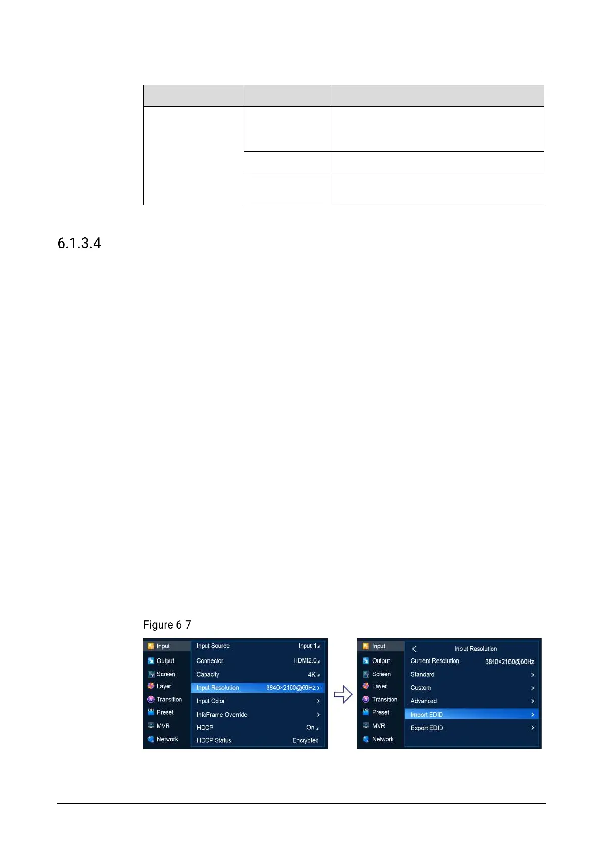 On the main menu screen, scroll to and select Input > Input Resolution > Import