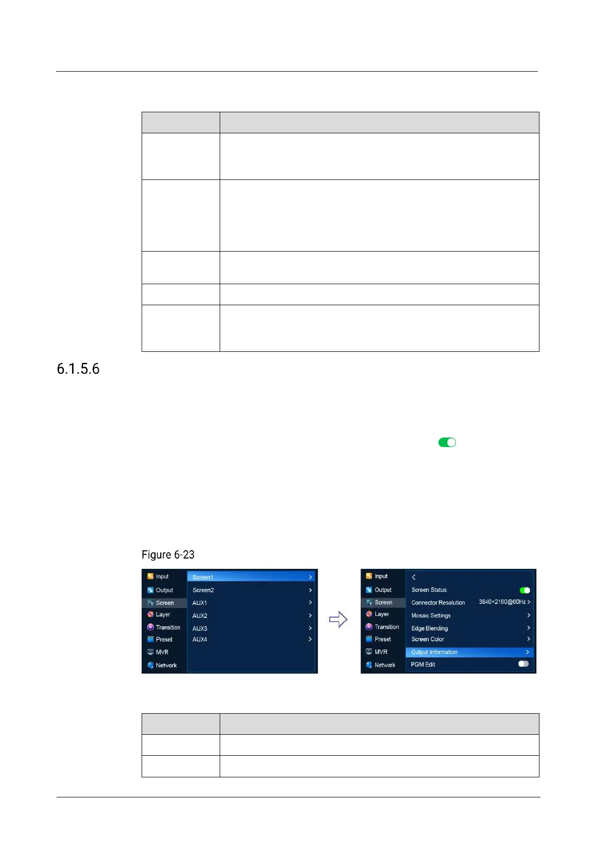 On the main menu screen, scroll to and select Screen > Screen1 > Output