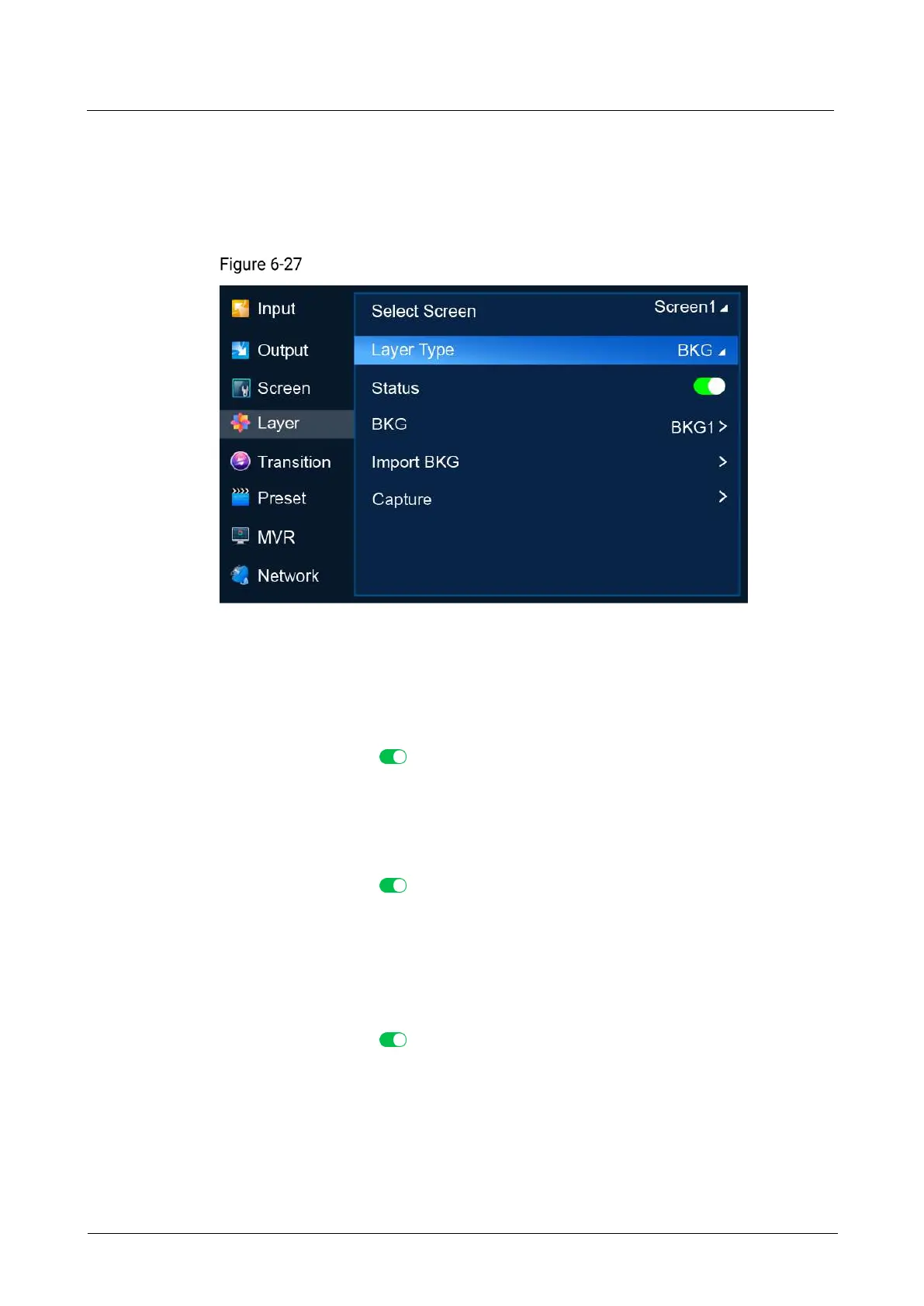 Select a common screen, set the layer type to BKG, and then do the following as