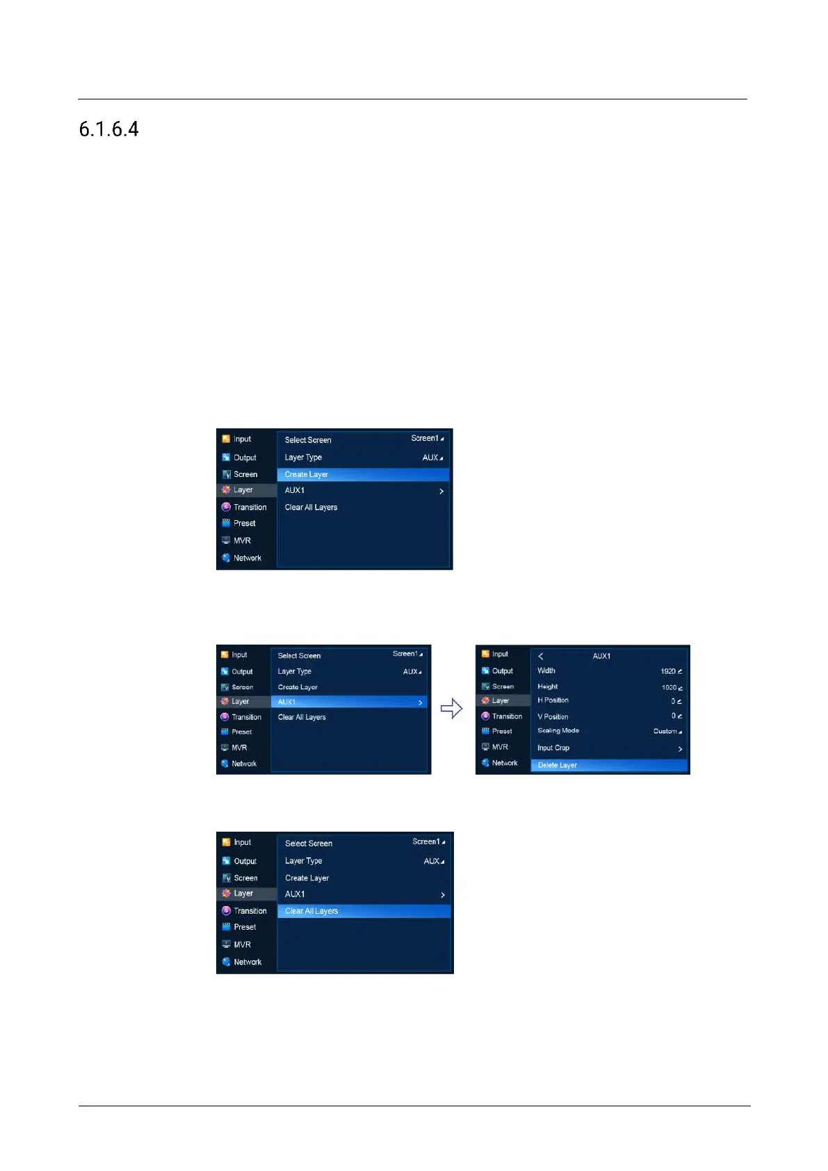 Select an AUX screen, set Layer Type to AUX, and then do the following as required.