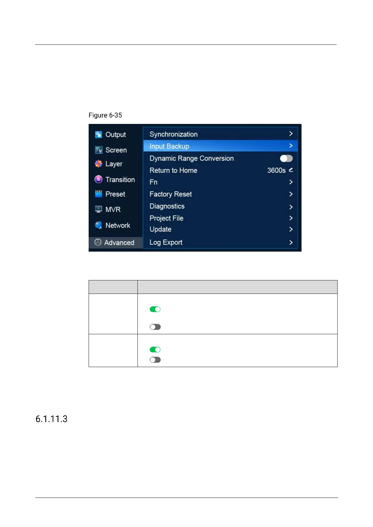 On the main menu screen, scroll to and select Advanced > Input Backup.