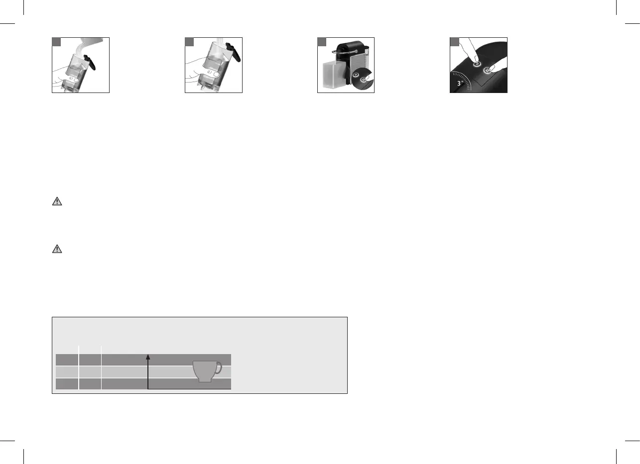 The descaling solution can be harmful. Avoid contact with eyes, skin and surfaces. The following table will indicate the descaling frequency required for