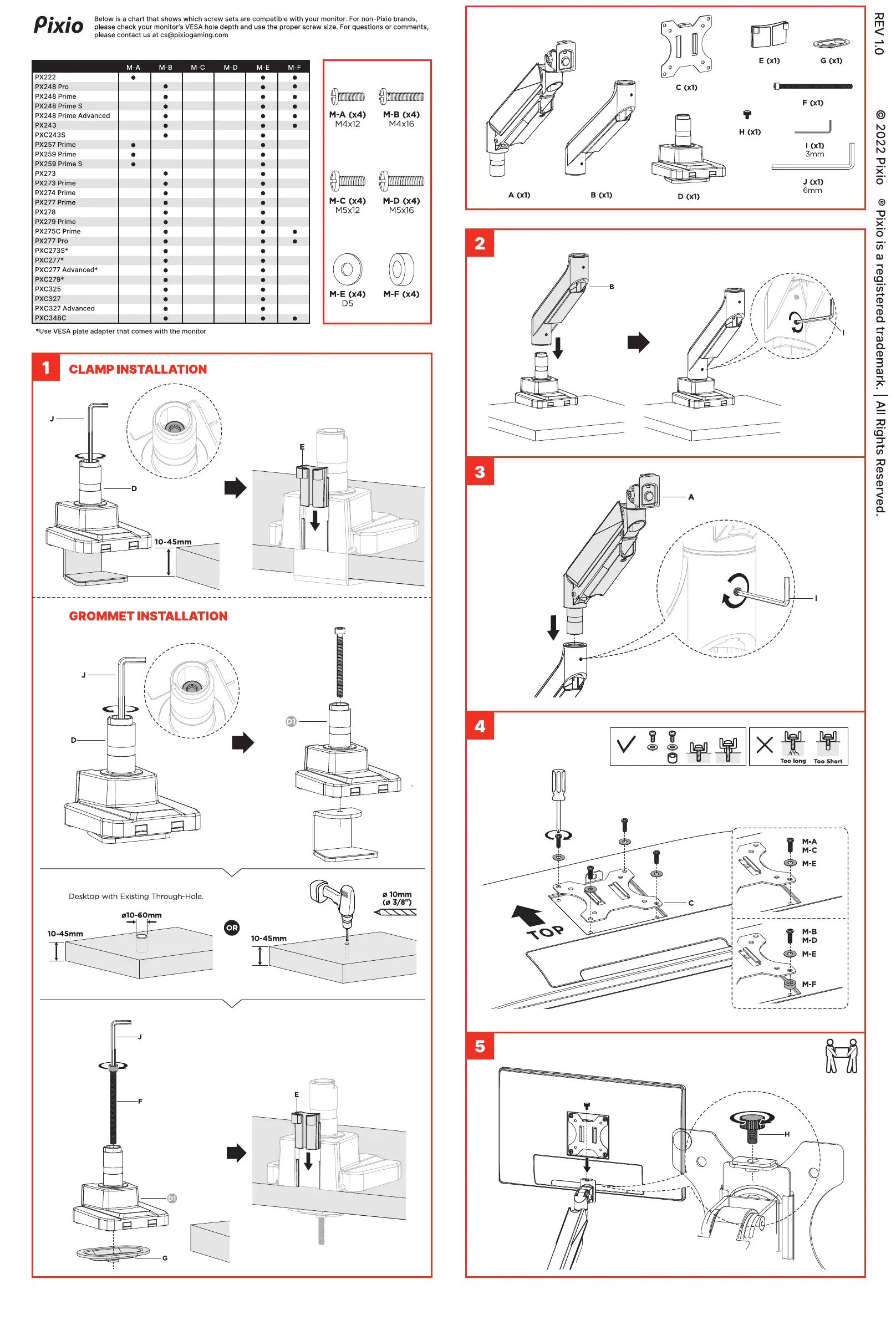 Pixio PS2S WHITE - Installation Methods; Clamp Installation; Grommet Installation; Component Identification and Assembly