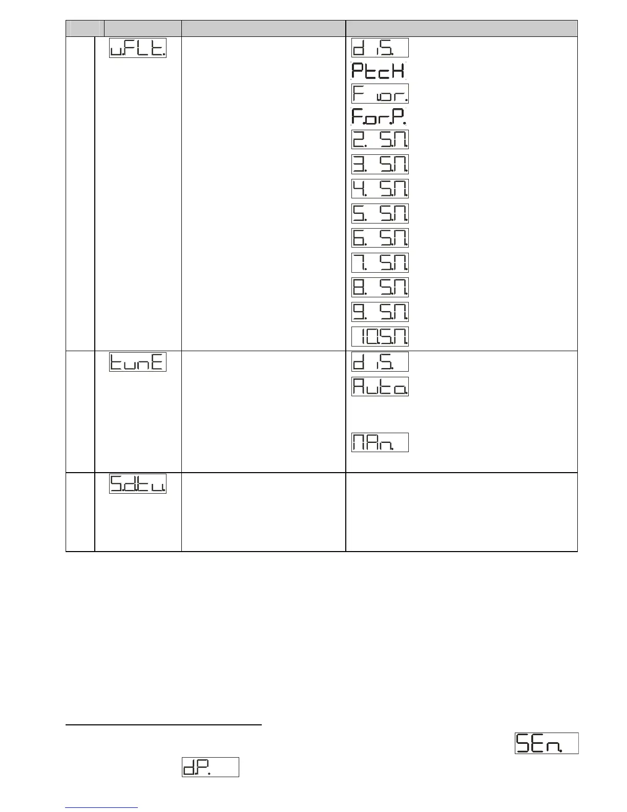 The display of the decimal point depends on the setting of the parameter