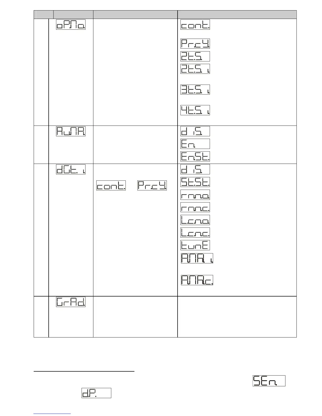 no. Display Parameter description Entering range