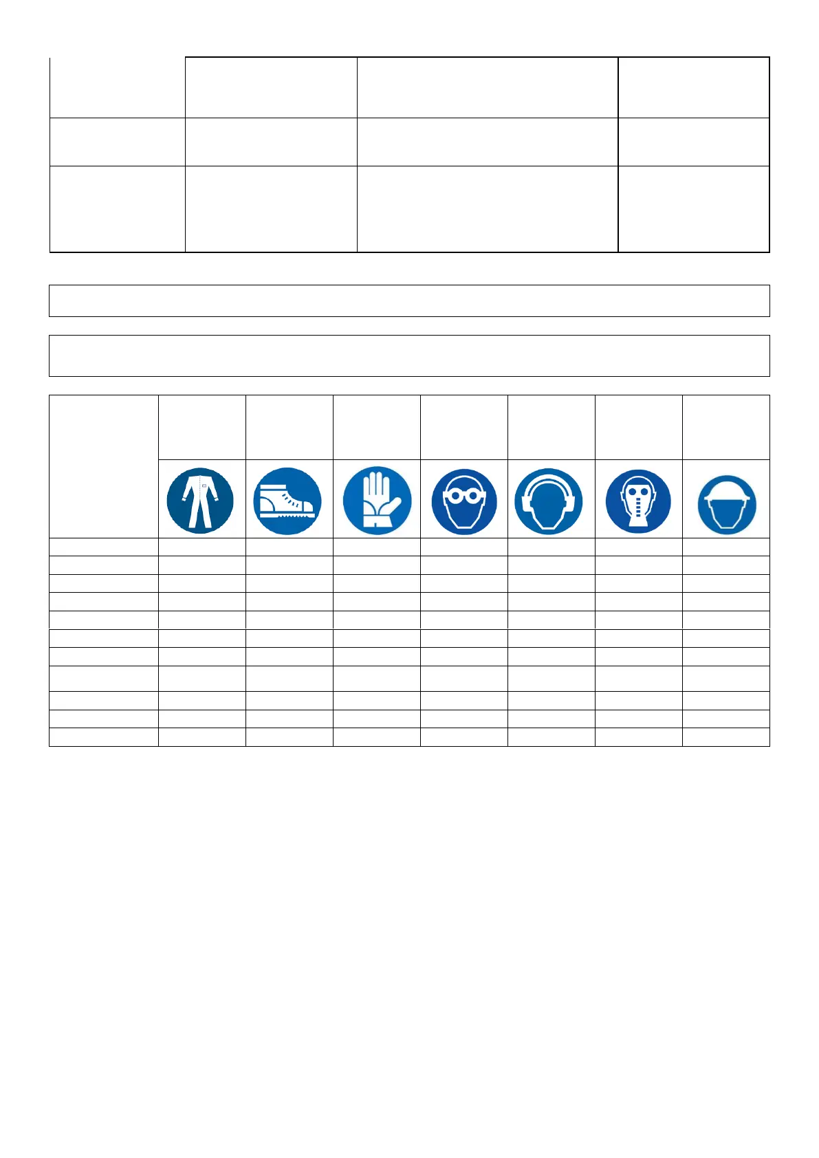 A summary table of the Personal Protective Equipment (PPE) to be used during the various phases of the appliance’s