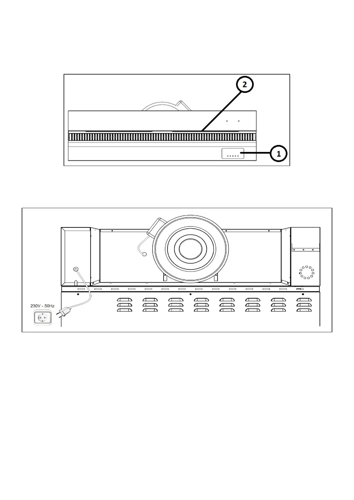 La hotte pour les fours mécaniques et toujours équipée de lumière (position 2) et de commandes pour l'allumage de la lumière