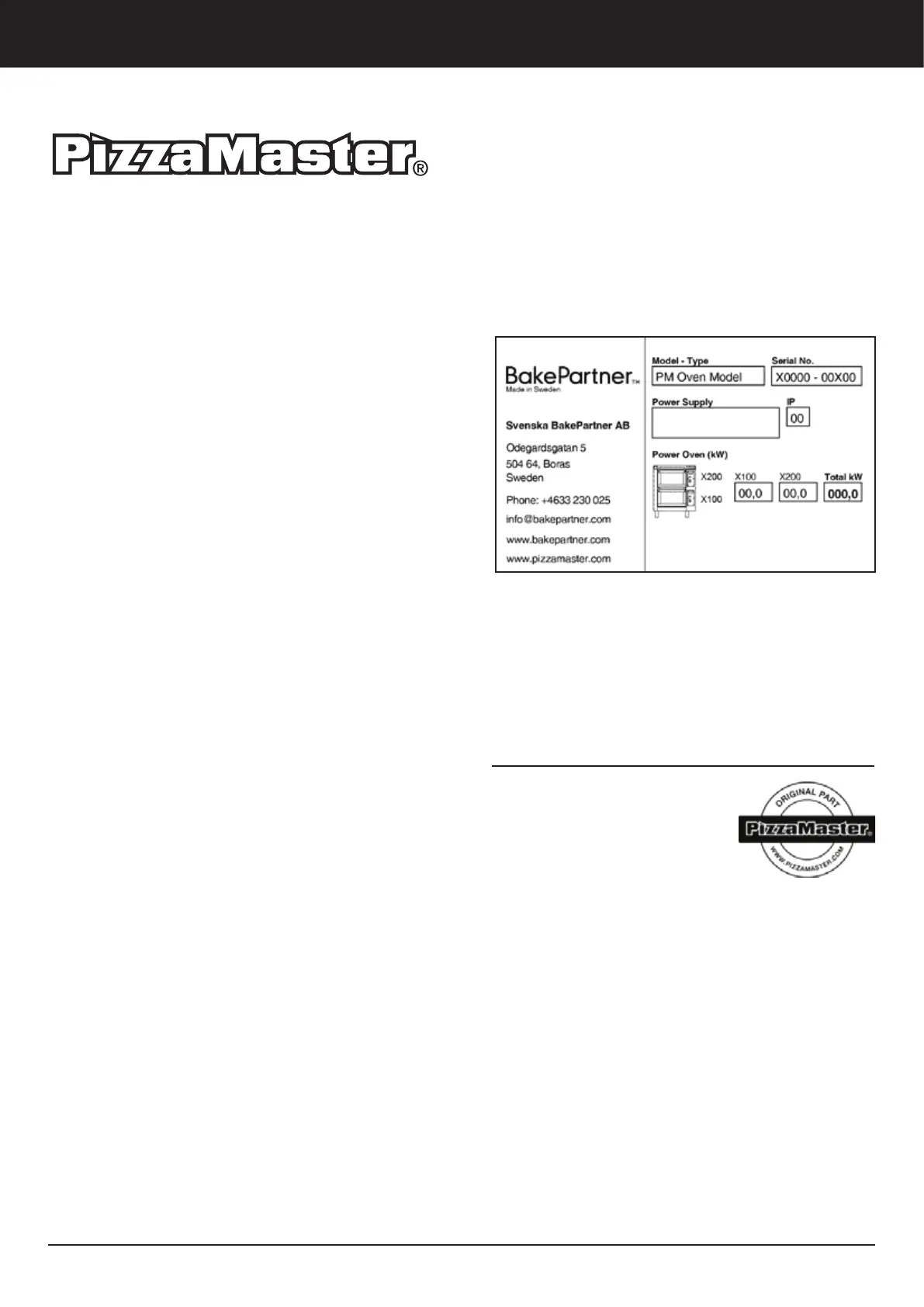 Website: www.pizzamaster.com or www.bakepartner.com I HQ: Svenska BakePartner AB, Odegardsgatan 5, SE 504 64 Boras Sweden