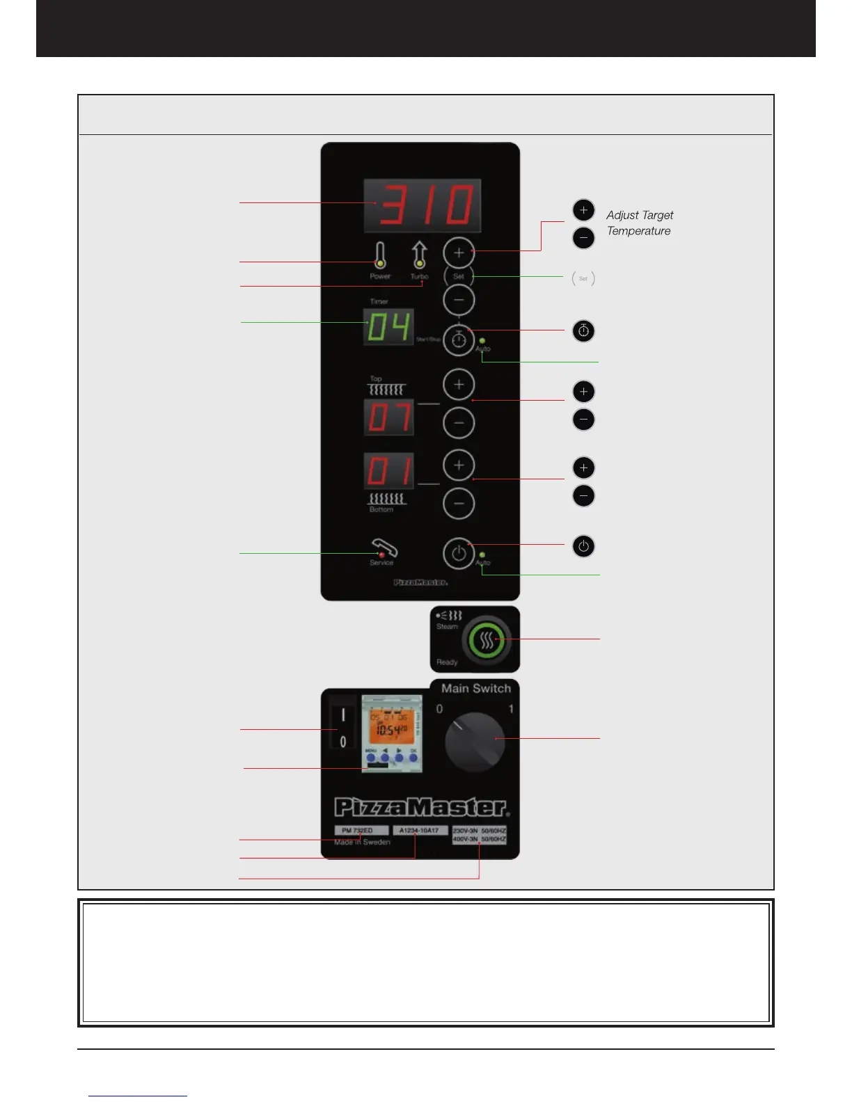PizzaMaster PM 942 - Oven Operation - Display ED; Digital Control Panel Overview