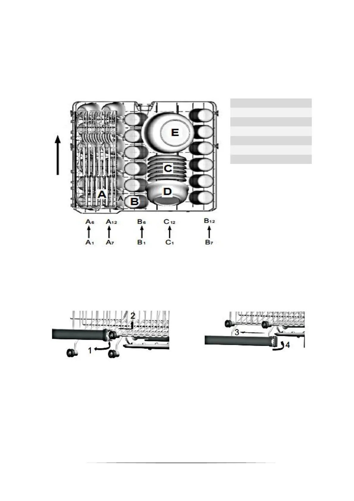 The upper dish rack is intended for delicate and light dishes such as glasses, cups,