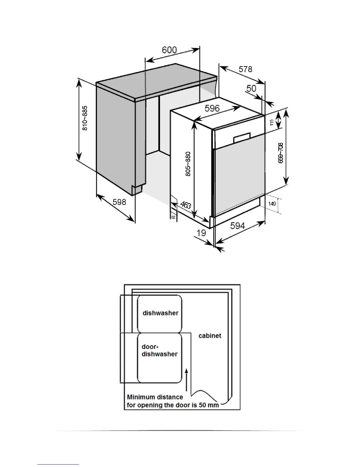Pkm DW12A++7TI - Dimensions; Minimum Required Space When Opening the Door