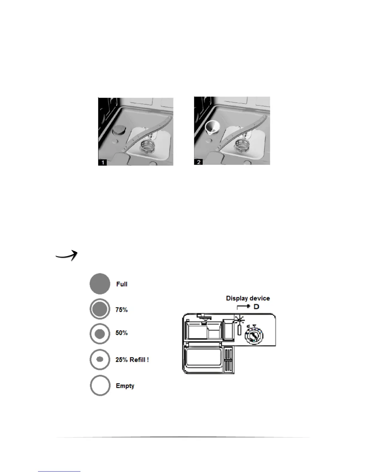 indicates the needed quantity of rinse aid.