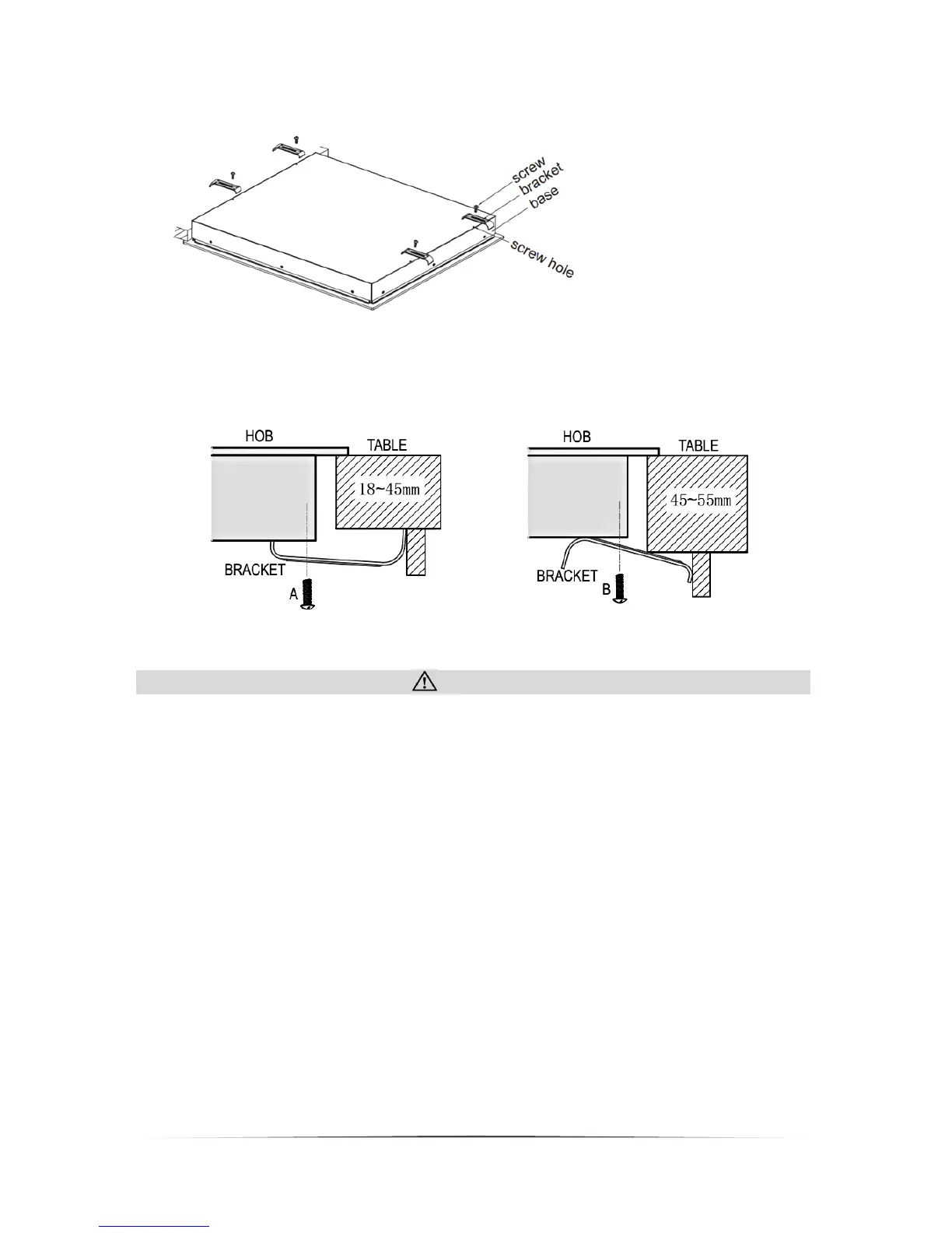 1. The hob must be installed by a qualified professional. Do not carry