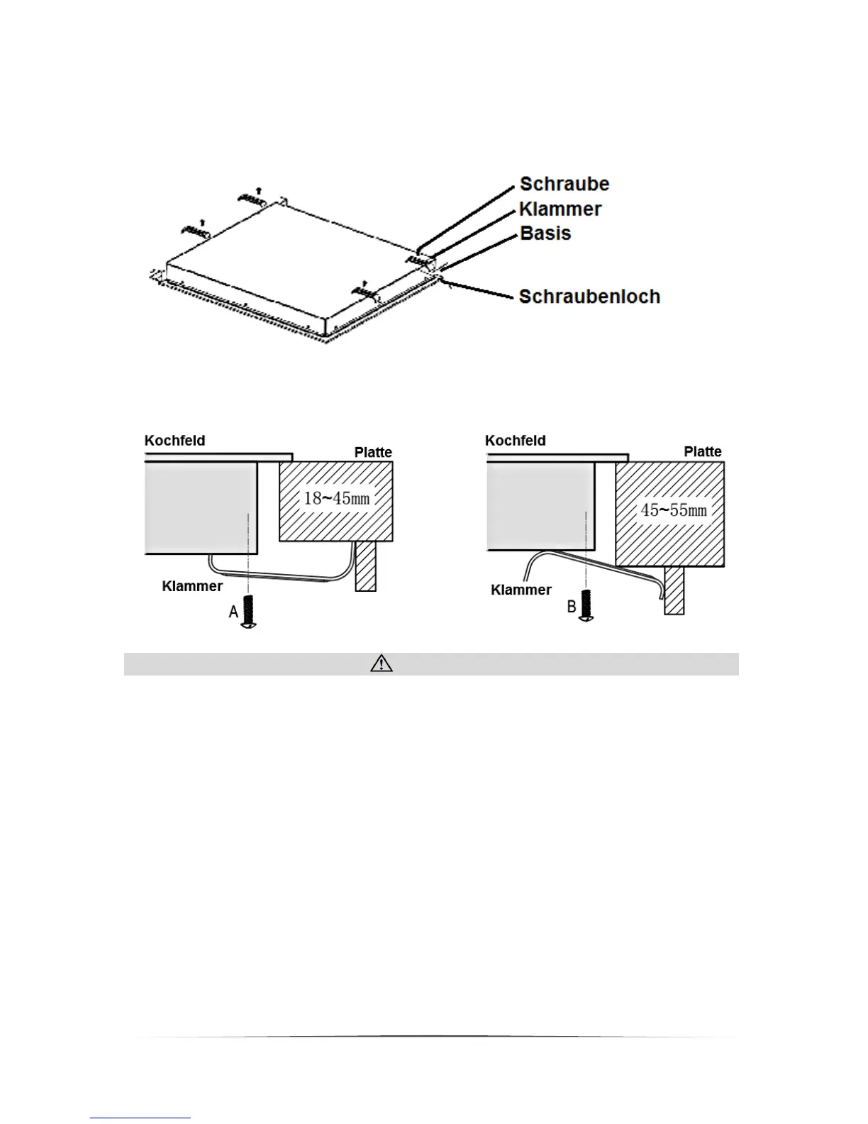 1. Das Kochfeld muss von einer qualifizierten Fachkraft installiert