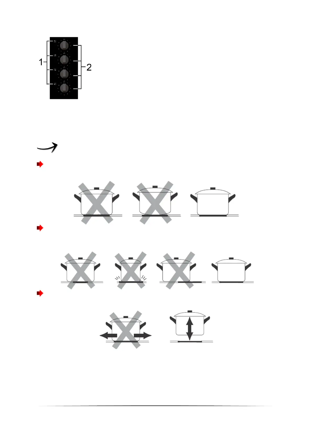 and have the same diameter as the relevant cooking zone. Always centre the