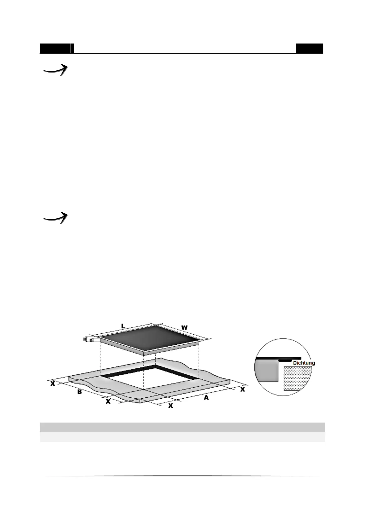 mm betragen. Verwenden Sie für die Arbeitsplatte ausschließlich hitzeresistentes