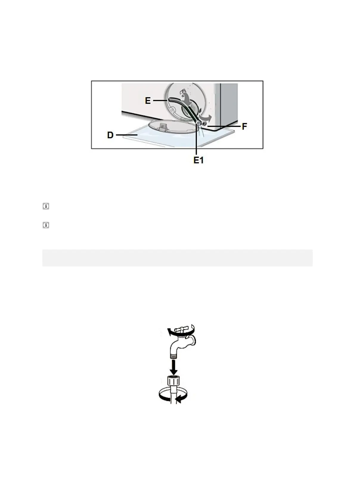 10. Reattach the water drainpipe (E) properly to the appliance.