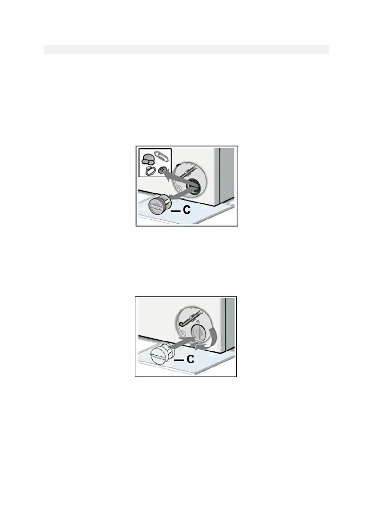 7. Setzen Sie das Ablaufpumpensieb (C) wieder ein und schrauben Sie es so weit