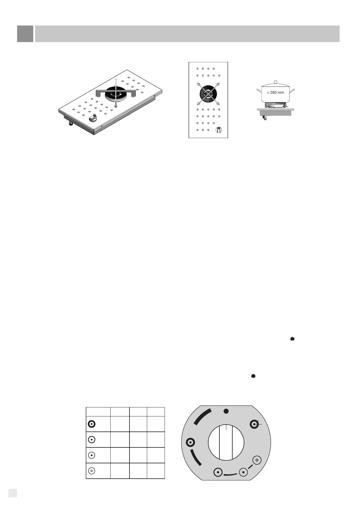 Zum Kochen ausschließlich Töpfe und Pfannen mit achem Boden und einem Durchmesser von 70 mm bis max. 260 mm verwenden.