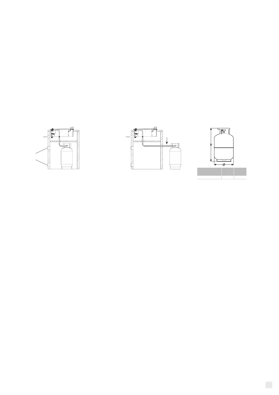 If the LPG cylinder is positioned under the appliance, it must be insulated from the non-combustible panel.
