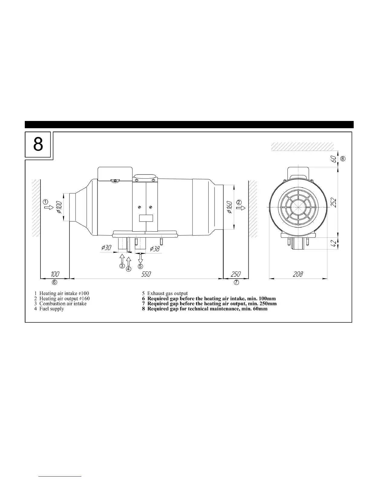 PLANAR-8DM Heater Dimensions .