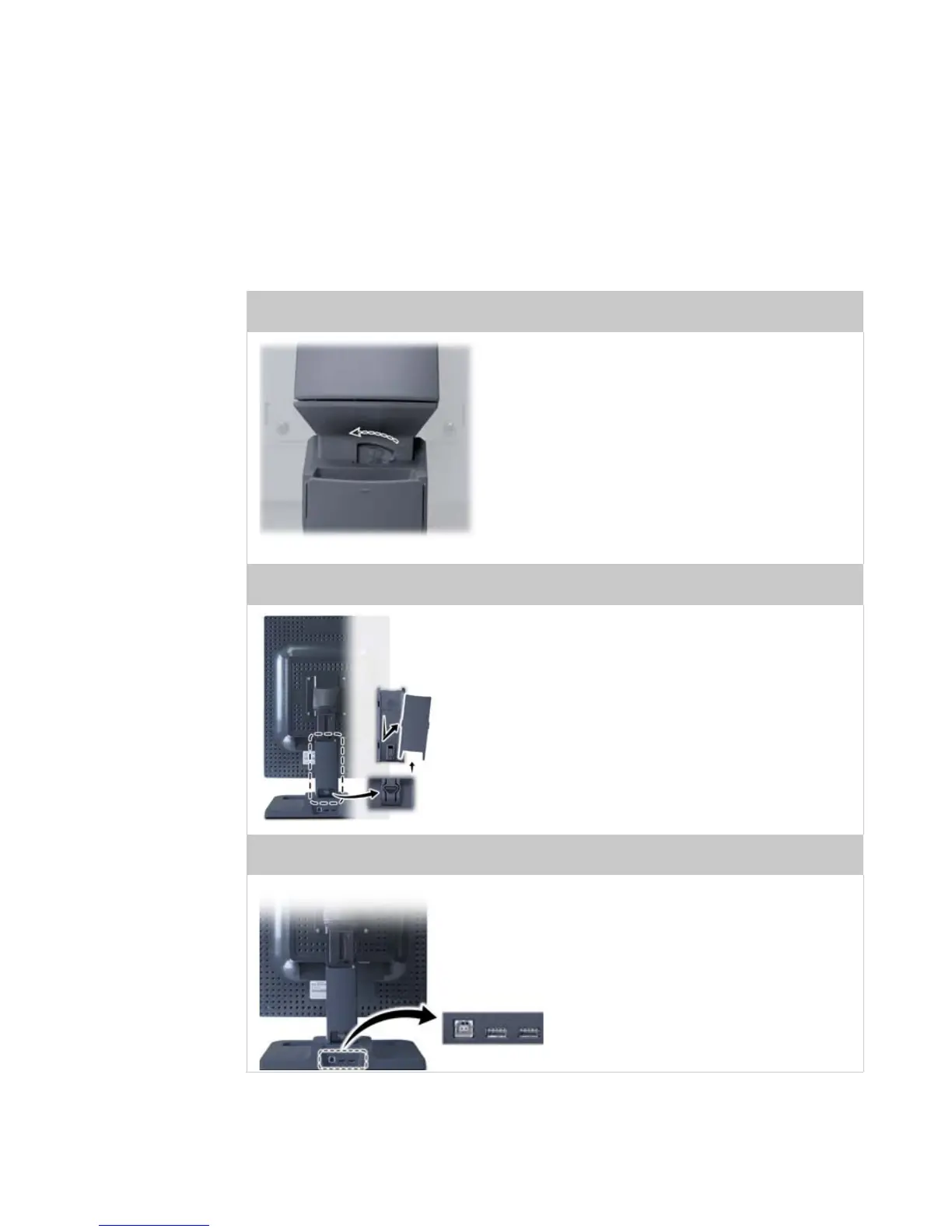 cover to thread the power cord and DVI cable connections to the