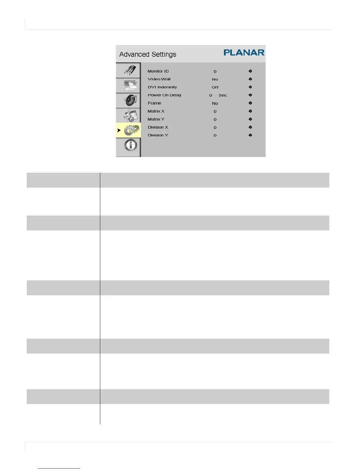 Used to manually set the Monitor ID of each display in the video wall.