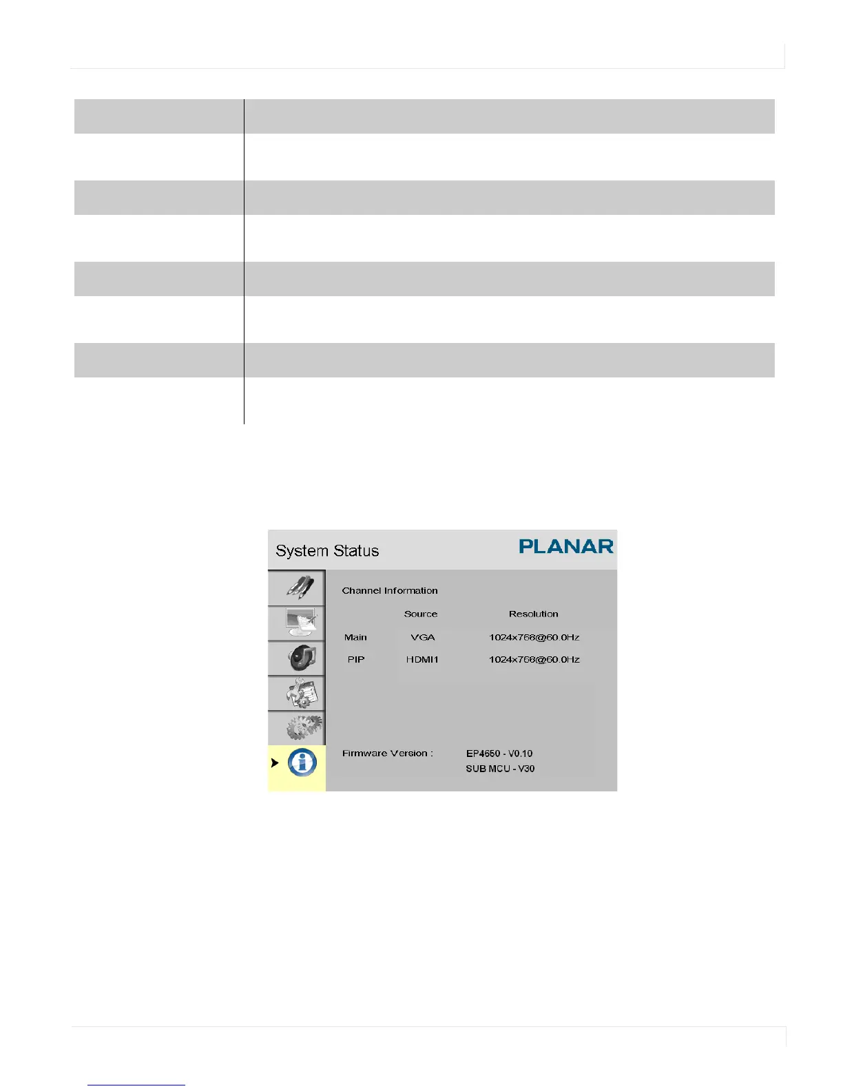 This read-only menu provides information about the active sources and the latest