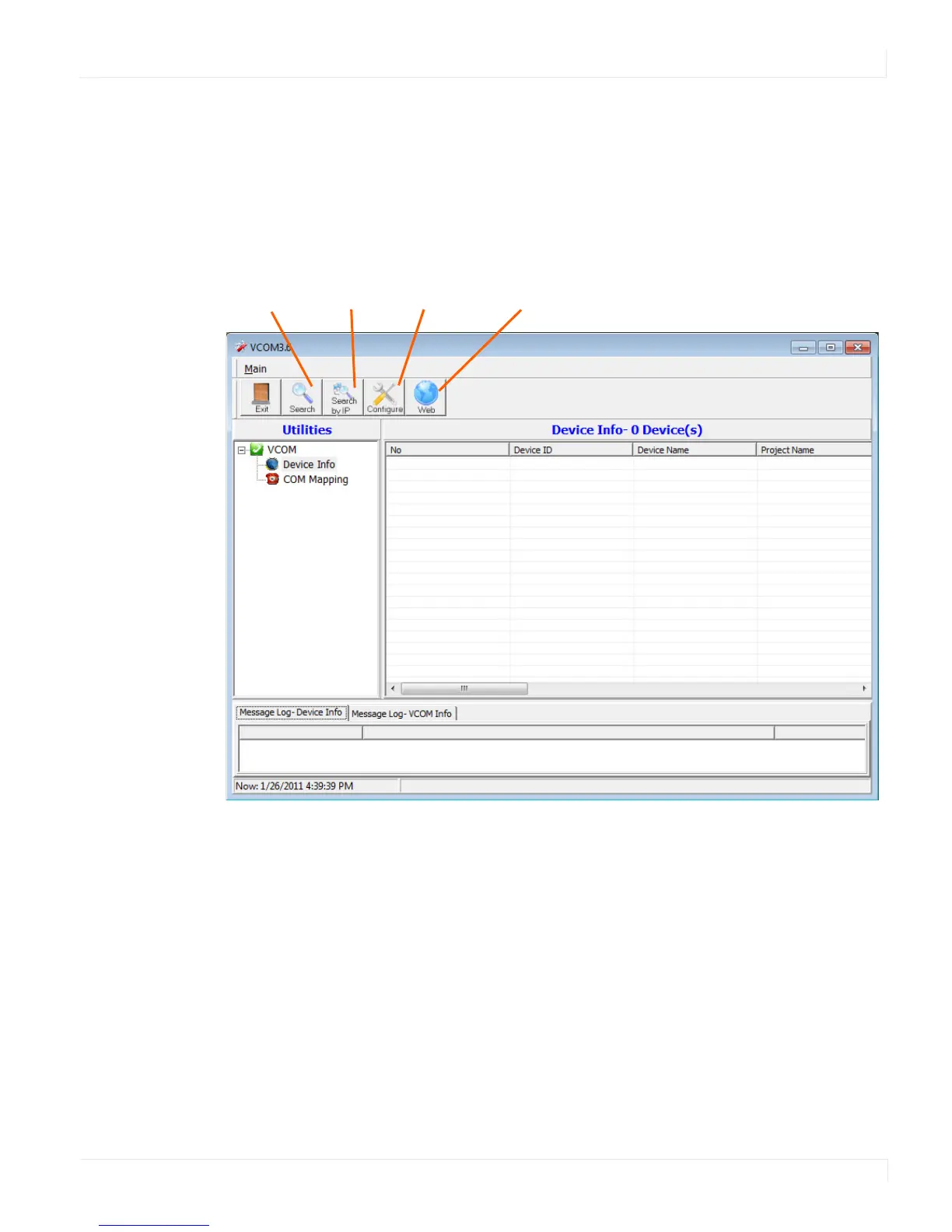 Device Info page, shown below. The controls on this page allow you to find and