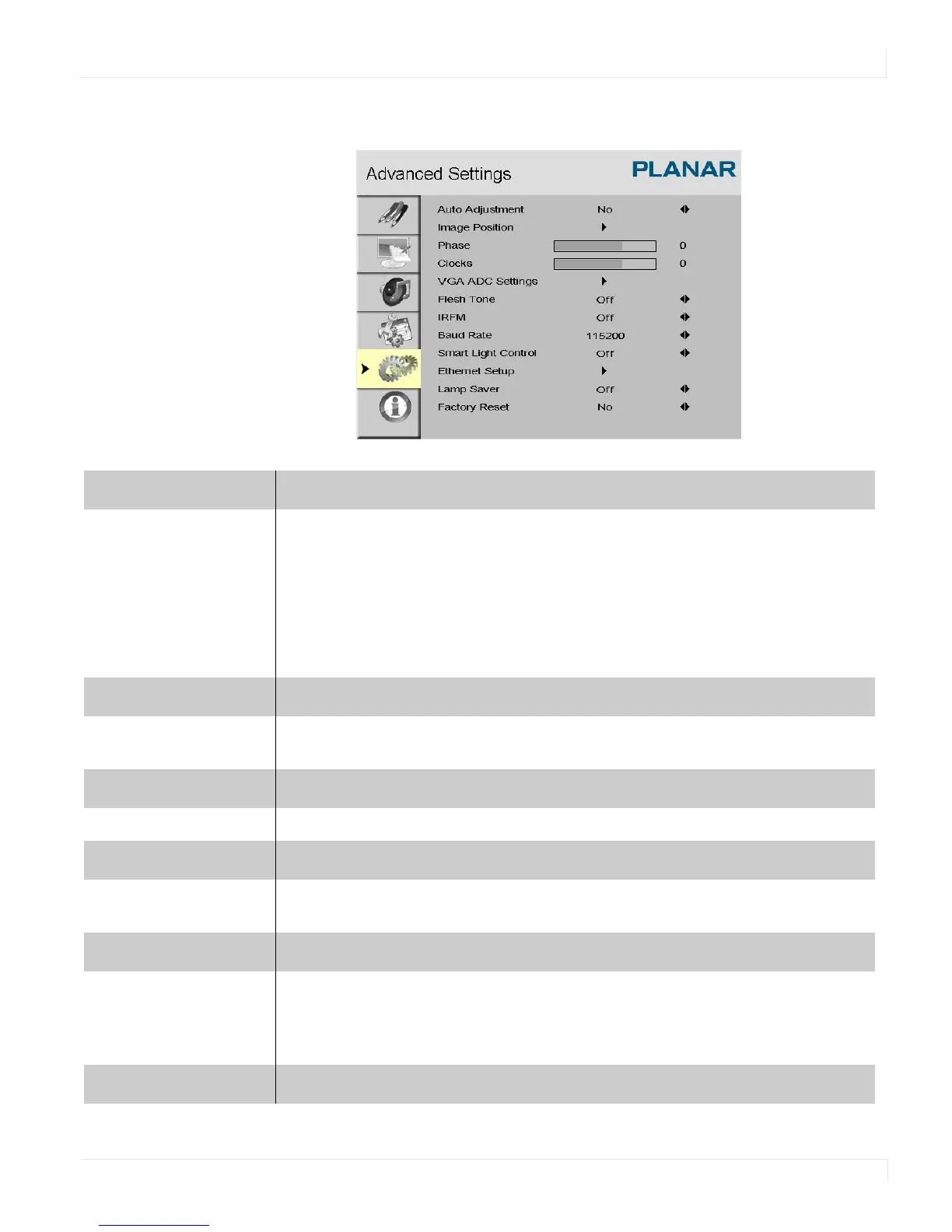 Select the ADC setting, User ADC Calibration, or restore factory default ADC