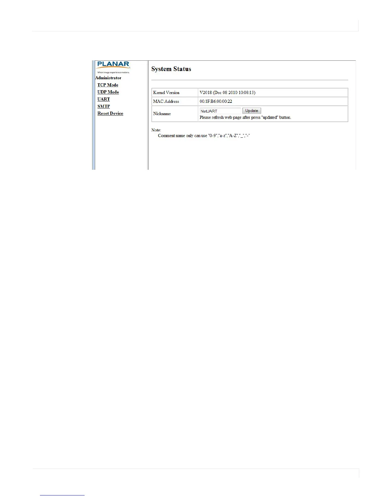 When you first login, you will see the System Status page, as shown here.