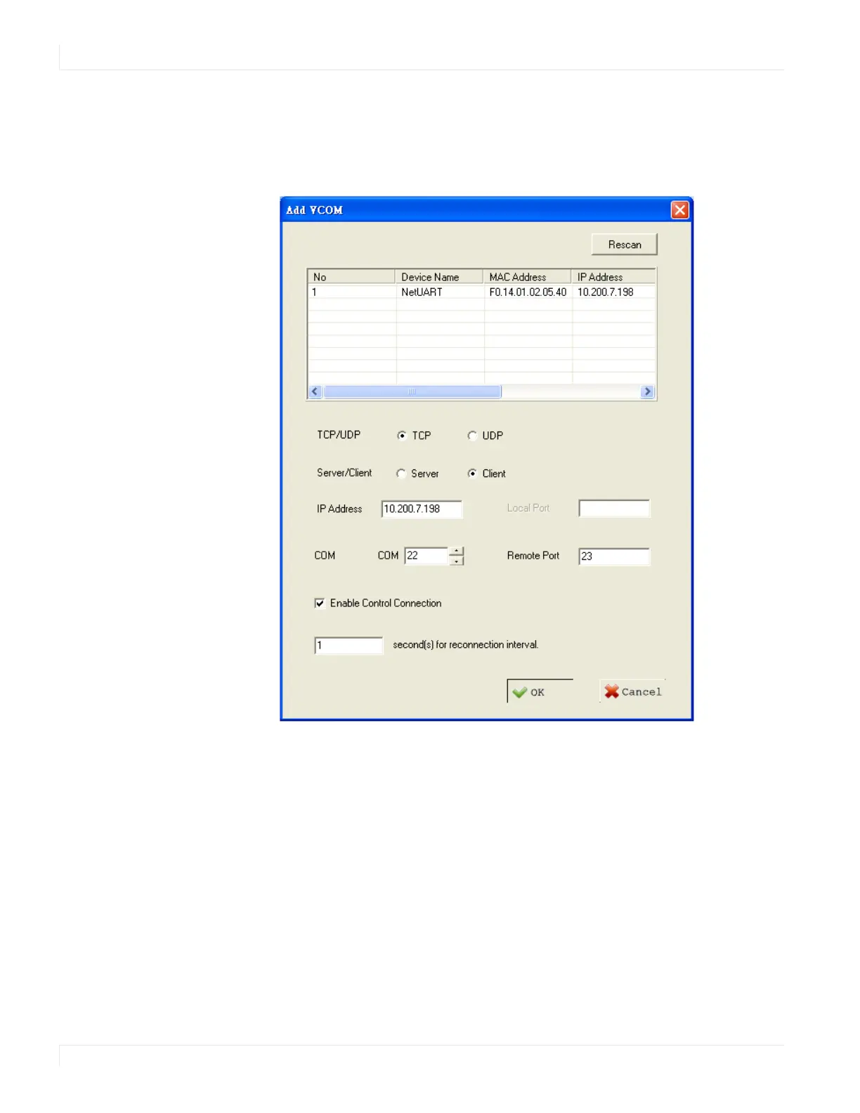 To add a virtual COM port, click the Add icon on the COM Mapping page to open the