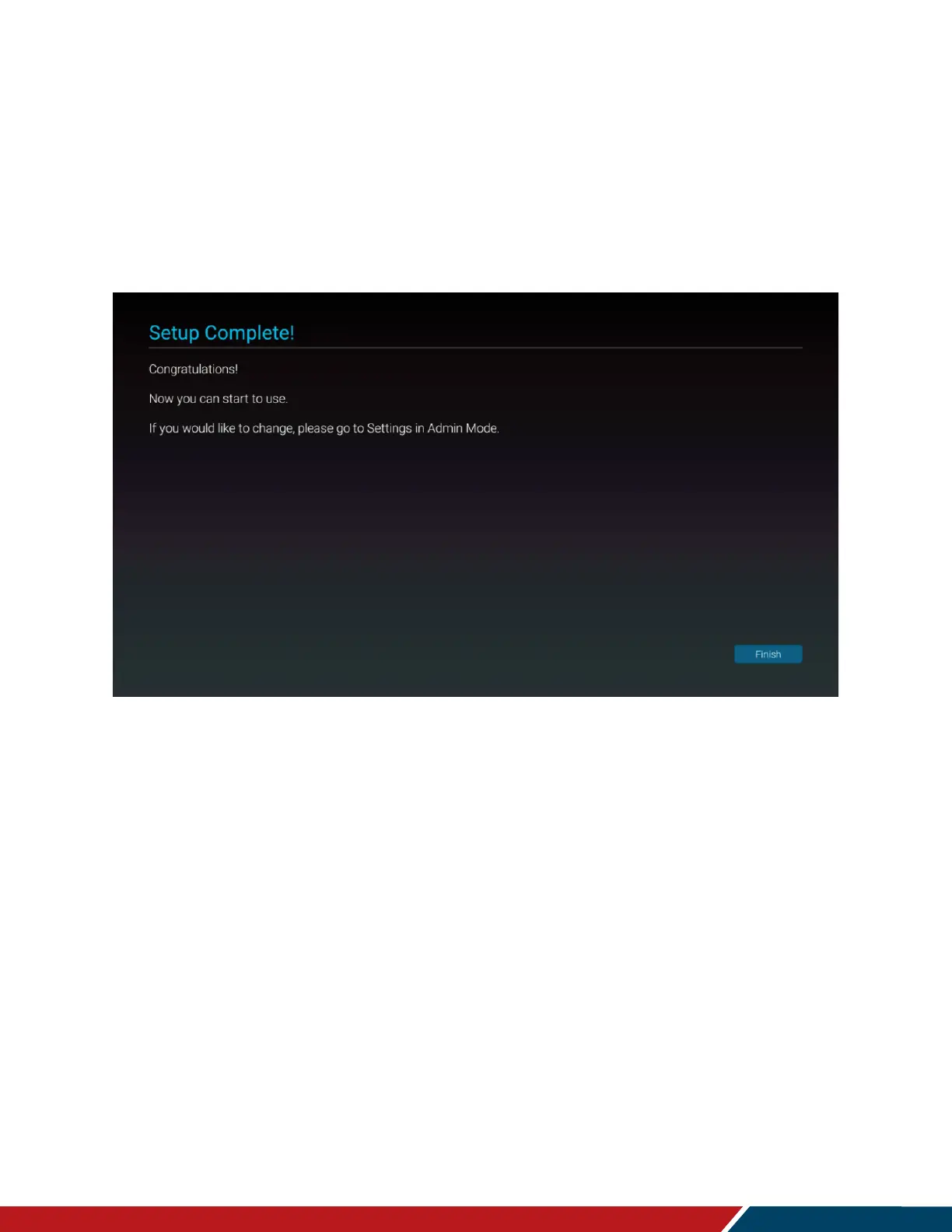 7. Initial configuration is now complete. Press finish to begin using the display.