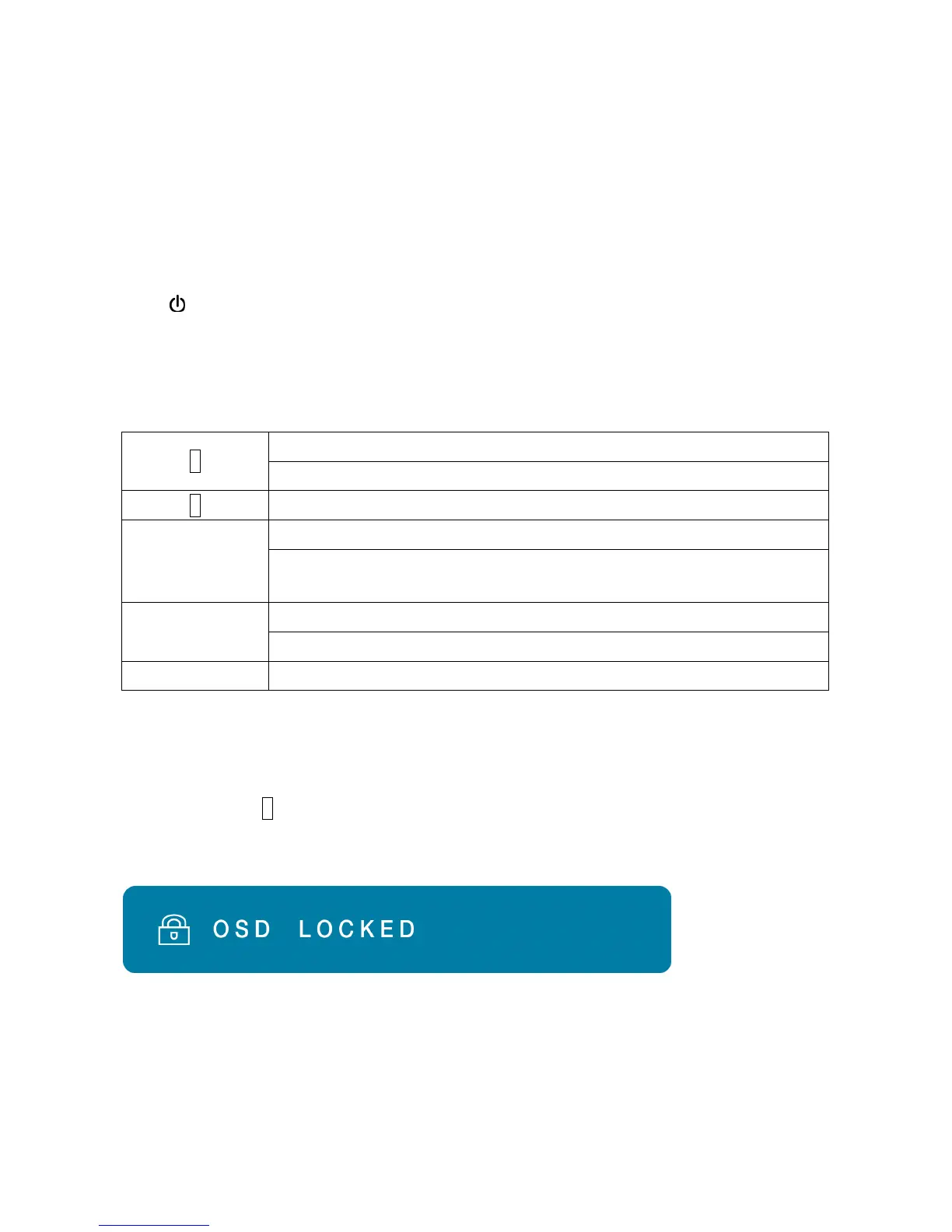 Option 1: OSD lock – all 4 buttons are locked except the “POWER” button.