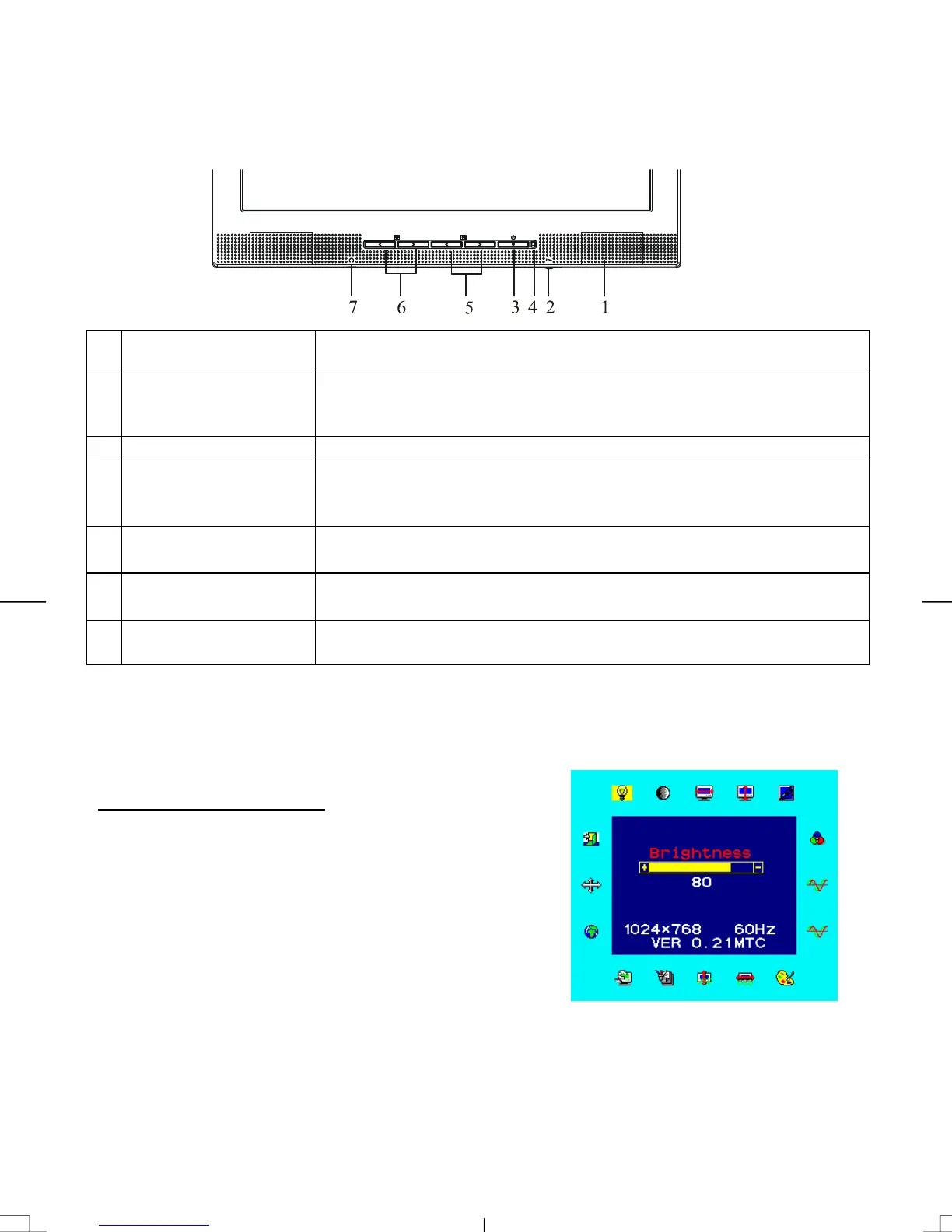 A brief description and the location of all LCD Monitor function controls and indicators: